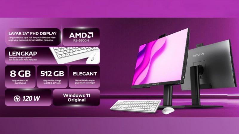 AIO ADVAN FORCE ONE A24A-R56S1 - R5 6600H 8GB 512GB RADEON 660M W11 23.8FHD 5.0MP CAMERA MS KB WIRELESS 1Y GREY